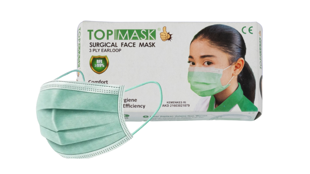 Surgical face mask digunakan sebagai alat pelindung diri untuk mendukung penerapan standar kebersihan dan higienitas tenaga kerja dapur, khususnya dalam proses pengolahan dan penyajian makanan sesuai ketentuan operasional yang berlaku