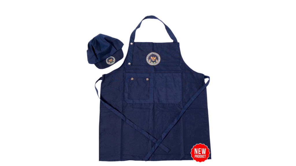 Apron digunakan sebagai perlengkapan kerja dapur yang berfungsi melindungi pakaian kerja